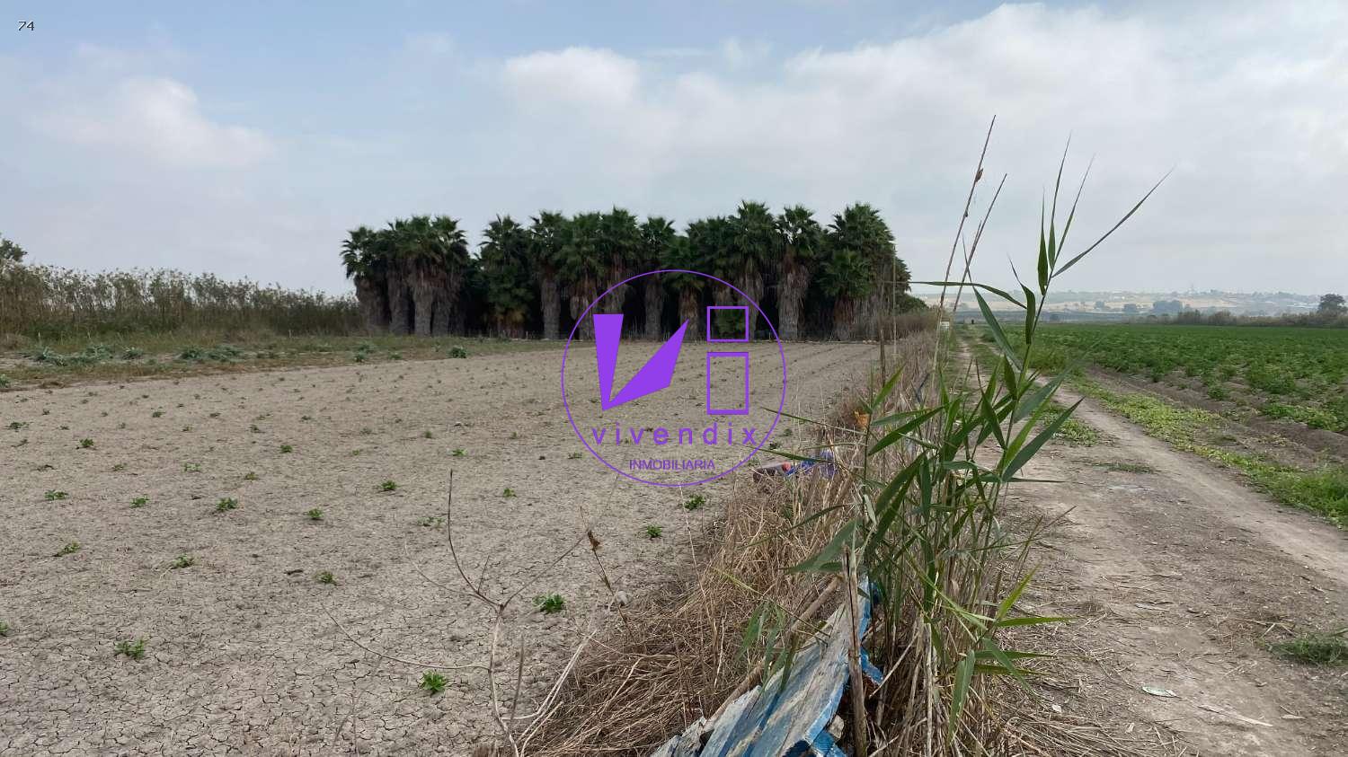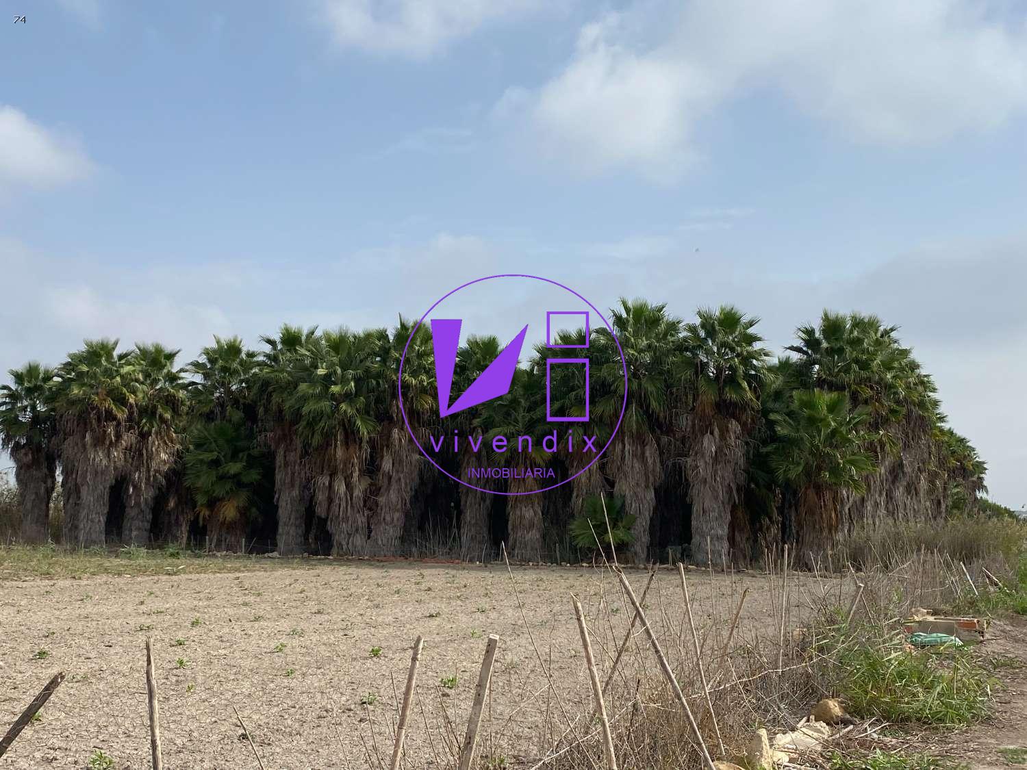 Parcela rustica, de 20.000 m2, con 250 palmeras de diferentes alturas. Posibilidad de edificar almacén de 100 m2 (Podemos gestionar la licencia). A 500 m de urbanización Marina. Posibilidad de adosar terreno de 18.000m2 más con casa de 220 m2 totalmente nueva. Escrituras independientes. Ambas parcelas sumarían 38.000 m2. Visiten y vean el paraje natural donde se enclava. Precio del conjunto 480.000€