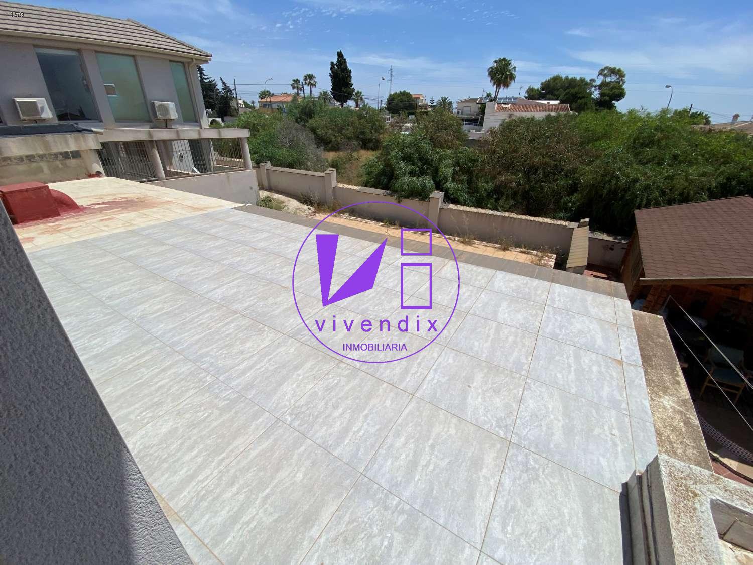 Alquiler de local comercial. Céntrico en zona comercial de Ciudad Quesada. Rojales. Apto para tienda y oficinas. Planta sótano de almacén 45 m2, planta baja salón publico y aseo 55 m2. Planta primera dos estancias independientes y terraza 50 m2. En planta baja, Terraza al frente de 20 m2. Negocios previos, oficinas y centro de estética.